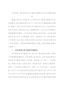 一”活动安排,即每天开展一次党史自学、每名党员讲一堂党史主题党课、观看一个系列党史文献纪录片、组织一次“红色走读”。截至目前,召开了3次支委会研究支部党史学习教育工作,召开4次党员大会学习习近平总书记重要讲话精神及党史学习教育必读书目等,组织党支部党员参加公司组织