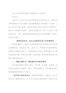 县长在全县清洁取暖工作推进会议上的讲话同志们:县政府今天召开这次全县清洁取暖工作推进会议,主要任务是贯彻落实全市会议精神,安排部署我县冬季取暖“气代煤”工作,动员各乡镇(街道)、县直有关部门利用今后四个月的时间,赶在今年供暖季开始前,全面完