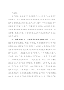 了动员部署,我完全同意。下面我再就全县建筑行业领域生产安全工作提几点要求:一、提高思想认识,认清安全生产任务的艰巨性。近年来,随着我县*新城建设、美丽乡村建设、美丽城镇建设等诸多项目的落地实施,建筑施工行业发展进入加速期,对促进县域经济发展有着积极