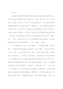 生态、社会生态的综合反映,也是一个地区软实力的重要体现,要着眼于长远发展,深刻认识优化营商环境的极端重要性和现实紧迫性,突出问题导向,狠抓整改落实,全力补齐短板与不足,把优化提升营商环境作为经济发展的生命线。要做到服务客商“零距离”、办事效率“零延误”、项目入驻“零障碍”、生