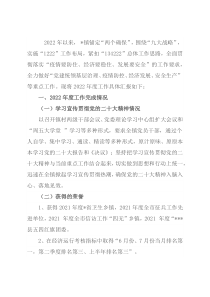 理、疫情防控、经济发展、安全生产”等重点工作。现将2022年度工作具体汇报如下:一、2022年度工作完成情况(一)学习宣传贯彻党的二十大精神情况以召开镇村两级干部会议、党委理论学习中心组扩大会议和“周五大学堂”学习等多种形式,要求全镇党员干部,通过