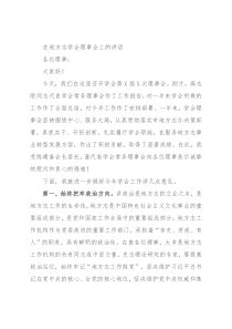 在地方志学会理事会上的讲话各位理事:大家好!今天,我们在这里召开学会第X届X次理事会。刚才,高志刚同志代表学会常务理事会作了工作报告,对一年来学会所做的工作作了全面总结,对今年工作作了安排部署。一年来,学会理事会坚