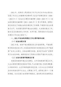 2021年,我局深入贯彻落实习近平总书记在中央全面依法治国工作会议上的重要讲话精神及《法治中国建设规划(2020-2025年)》《法治社会建设实施纲要(2020-2025年)》《法治政府建设实施纲要(2021-2025年)》等文件精神,按照区委区政府关于加强