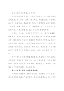 在全市组织工作务虚会上的讲话今天我们召开这个会议,主要目的是总结工作、分析问题和谋划思路,进一步统一思想、凝心聚力,确保我们的工作能够主动进位、抓早抓实、基础牢固。刚才,大家紧密结合岗位实际和工作职责,都做了很好的发言,讲的都很实在,对2020年工作总结到位、问题分析准确,202