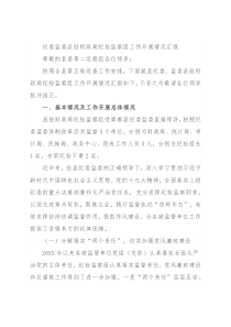 纪委监委派驻财政局纪检监察组工作开展情况汇报尊敬的县委第二巡察组各位领导:按照全县第五轮巡查工作安排,下面就县纪委、监委派驻财政局纪检监察组工作开展情况汇报如下,不妥之处敬请各位领导批评指正。一、基本情况及工作开展总体情况派驻财政局纪检监察组受商都县纪委监委直接领导,按照纪委监