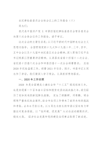 在纪律检查委员会全体会议上的工作报告(六)同志们:我代表中国共产党X市第四届纪律检查委员会常务委员会向第六次全体会议作工作报告,请予审议。这次全会的主要任务是:以习近平新时代中国特色社会主义思想为指导,全