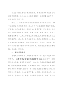 今天会议的主要任务是深刻理解、贯彻落实XX书记在全省疫情防控领导小组扩大会议上的讲话精神,安排部署当前和下一步全市疫情防控工作。昨天,XX省党委召开全省疫情防控领导小组扩大会议,XX书记主持会议并发表讲话,深入分析了当前疫情形势的严峻性、复杂性,讲的非常深刻、非常透彻,振聋