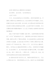 事业发展的各位领导、企业家和坚守文艺道路、为文艺繁荣发展作默默奉献的广大文艺工作者致以诚挚的问候和崇高的敬意!2021年是中国共产党建党100周年,也是贯彻落实党和国家“十四五”规划的起步之年。为歌颂伟大的中国共产党的丰功伟绩,激发XX职工干事创业热情,为XX旅游发展大会营造丰富多彩的文