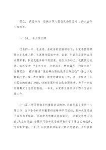 现在,我受中共__怒族乡第八届委员会的委托,向大会作工作报告。一、20__年工作回顾过去的一年,在县委、县政府的坚强领导下,乡党委团结带领全乡各族人民,认真贯彻落实中央、省委、州委及县委的各项决策部署,积极克服多种不利因素,变压力为动力,