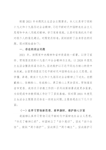 根据2021年专题民主生活会主题要求,本人认真学习党的十九大和十九届历次全会精神、习近平新时代中国特色社会主义思想和中央八项规定精神,学习党章党规,认真听取局机关干部对我个人的意见建议,对照党员标准,深刻剖析了自身存在的问题。现对照