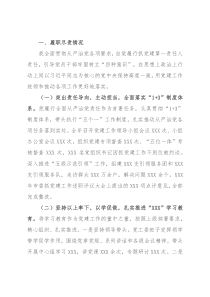 。(一)突出责任导向,主动担当,全面落实“1+3”制度体系。把履行全面从严治党责任作为首要任务,认真贯彻“1+3”制度体系,带头执行“五个一”工作制度,扎实推动从严治党各项任务落到实处。全年召开党建工作领导小组会议XXX次、小组办公室会议XXX次,组织党建专项督