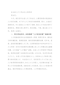 县人才工作,我讲三点意见。一、努力形成共识,加快构建“人才优先发展”战略布局人才是推进经济社会发展的第一资源,是吸引资本、激发活力的关键因素,是彰显优势、推动发展的重要支撑。近年来,县委、县政府高度重视人才工作,认真贯彻落实中央和省市关于人才工作的一系列方针政策和决策部署,把人才工作摆