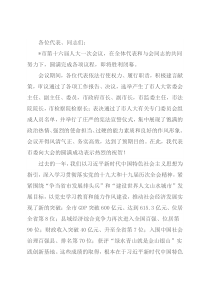 各位代表、同志们:*市第十六届人大一次会议,在全体代表和与会同志的共同努力下,圆满完成各项议程,即将胜利闭幕。会议期间,各位代表依法行使权力、履行职责,积极建言献策,审议通过了各项工作报告、决议,选举产生了市人大常委会主任、副主任、委员,市政府市长、副市长,市监委主任,市法院院