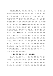 思想实际,认真开展党性分析、深入查摆存在问题、精准制定整改措施,为开好这次民主生活会做了充分准备。下面,我代表党委班子作发言。一、深入学习领会党的二十大精神情况自党的二十大召开以来,**党委及各基层党组织通过中心组学习、党员大会集中学习、培训