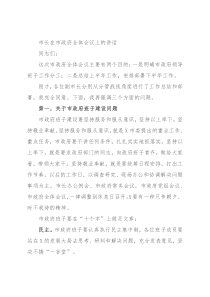 市长在市政府全体会议上的讲话同志们:这次市政府全体会议主要有两个目的:一是明确市政府领导班子工作分工;二是总结上半年工作,安排部署下半年工作。刚才,各位副市长分别从分管战线角度进行了工作总结和部署,我完全同意。下面,我再强调三个方面的问题。第一,关于市政府班子建设问题市政府班子