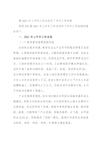 镇2021年上半年工作总结及下半年工作安排现将XXX镇2021年上半年工作总结和下半年工作安排的报告如下。一、2021年上半年工作总结(一)高质量发展释放新动能农林牧业稳步发展。做好农业生产各环节的服务管理及农经管理。认真做好破坏草原林地、大棚房