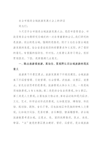 很好的意见,有很强的指导性、针对性,大家要认真学习领会,抓好贯彻落实。下面,我再强调几点意见。一、跳出旅游看旅游,高站位、宽视野认识全域旅游的现实意义旅游离不开景区景点,旅游发展离不开规划建设,全域旅游离不开经营管理、行政管理、社会管理。讲旅游、谈