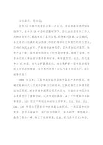 原因,XXX同志不再担任市政协主席职务,XXX、XXX、XXX、XXX、XXX等同志不再担任市政协副主席职务,一些五届市政协常委、委员不再留任。他们在任职期间,恪尽职守、勤勉敬业,赢得了群众口碑、树立了良好形象。在此,我代表中共XX市委,向即将离开政协工作岗位的同志们,致以崇高敬意!向五届市