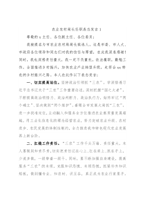 责,切实把责任记在心上、扛在肩上、抓在手上,少说多做,一级带着一级干。同时,要不断加强自身建设,提高服务“三农”的本领,克服知识恐慌、本领恐慌,抓紧补齐知识短板,做到懂专业、知农时、识五谷,真正成为农业行家里手。三、勤勉扎实履职。在市委、市政府领导下,我将团结同志,充分发挥班子成员及全局干部