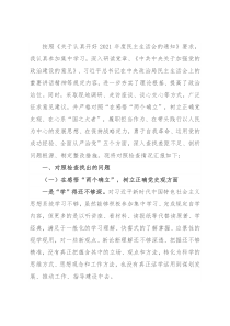 议,并严格对照“在感悟“两个确立”,树立正确党史观、在心系“国之大者”,履职担当作为、在带头践行以人民为中心的发展思想、在保持战略定力,勇于自我革命、运用党的成功经验、全面从严治党”五个方面,深入查找差距不足、剖析问题