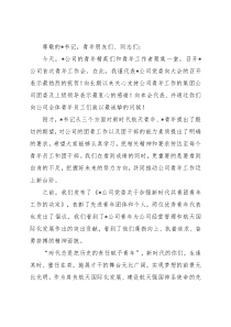 足,把握好未来的努力方向,共同推动公司青年工作迈上新台阶。之前,我们发布了《*公司党委关于加强新时代共青团青年工作的决定》,表彰了先进青年团体和个人,两位优秀青年代表也发出了倡议,我们看到了*公司青年为公司经营管理和航天国际化发展作出的突出贡献,看到了他们蓬勃