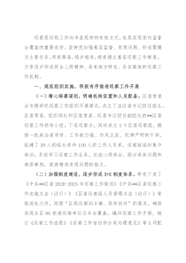 一批涉嫌违纪违法问题线索。二、下一步工作打算(一)首轮收尾,阶段总结。巡察要发现问题、形成震慑。首轮巡察已接近尾声,各巡察组将对重点情况和问题进行梳理分类,形成巡察工作报告和问题线索情况报告。透过首轮巡察工作进行阶段性总结,