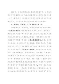 时代XX治水精神现场学习考察,召开争当“狼性干部”党员大会,引导党员干部坚定信念、永葆本色。四是加强老干部支部工作。积极引导老同志力所能及为中心工作发挥余热,通过在线学习等形式灵活开展自我教育、自我管理,主动为老干部、困难老党员排忧解难。二、讲担当、勇作为,有效推动统战工作开拓创新坚持