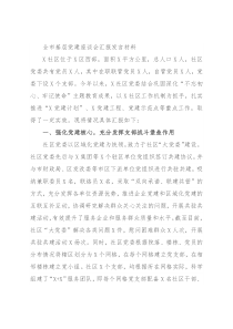 记使命”主题教育成果,以X社区工作机制为抓手,扎实推进“X党建计划”、X党建工程、党建示范点等重点工作,取得了一定实效。现将情况具体汇报如下:一、强化党建核心,充分发挥支部战斗堡垒作用社区党委以区域化党建为统领,致力于社区“大党委”建设