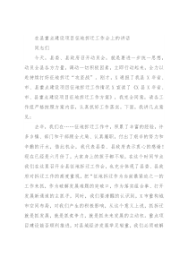 在县重点建设项目征地拆迁工作会上的讲话同志们今天,县委、县政府召开动员会,就是要进一步统一思想,动员全县各方力量,调动一切积极因素,立即行动起来,全力以赴持续打好征地拆迁“攻坚战”。刚才,X通报了我县X年省、市、县重点建设项目征地拆迁工作情况X宣读了《X县X年省、市、县