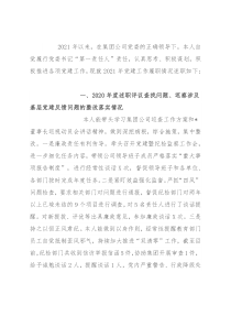 2021年以来,在集团公司党委的正确领导下,本人自觉履行党委书记“第一责任人”责任,认真思考、积极谋划,积极推进各项党建工作,现就2021年党建工作履职情况述职如下:一、2020年度述职评议查找问题、巡察涉及基层党建反馈问