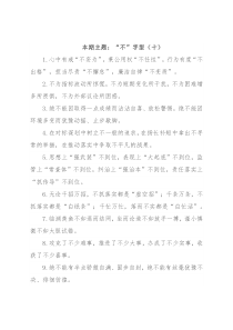 本期主题:“不”字型(十)1.心中有戒“不妄为”,秉公用权“不任性”,行为有度“不出格”,担当尽责“不懈怠”,廉洁自律“不变质”。2.不为指标波动所惊慌,不为短期变化所干扰,不为困难增多所畏惧,不为外部议论所困惑。3.绝不能因取得一点成绩而沾沾自喜、放松警惕,绝不能因环境多变而犹豫动
