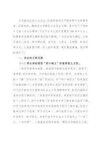 为开好这次民主生活会,区委常委班子严格按照中央部署和省、区委安排,围绕本次专题民主生活会主题,集中学习了党的十九届六中全会精神、习近平总书记在庆祝建党100周年大会上的重要讲话精神及最新指示批示精神,广泛征求意见建议,全面开展谈心谈话。通过群众