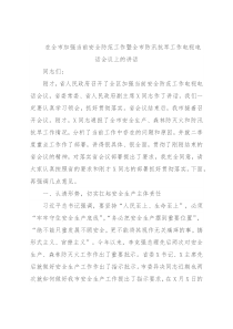 在全市加强当前安全防范工作暨全市防汛抗旱工作电视电话会议上的讲话同志们:刚才,省人民政府召开了全区加强当前安全防范工作电视电话会议,省委常委、省人民政府副主席X同志作了讲话。我们一定要认真学习领会,抓好贯彻落实。
