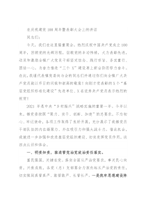 台阶而努力奋斗。在此,我谨代表镇党委向与会的同志们并通过你们向全镇广大共产党员致以节日的问候和崇高的敬意!向刚才受表彰的X个“基层党组织标准化建设”先进单位、X名优秀共产党员表示热烈的祝贺!2021年是中央“乡村振兴”战略