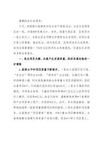 会,我代表区委、区政府向各位老领导、老同志简要通报一下*年全区经济社会发展情况,还请各位老领导多提宝贵意见。一、突出项目支撑,注重产业发展质量,经济发展动能进一步增强1.招商水平和项目质量不断提升。一是加大招商引资力度。“走出去”拜访企业*家,“请进来”企业*家,长城汽车小镇、华润啤酒小镇、阳光