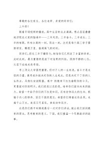 尊敬的各位家长、各位老师、亲爱的同学们:上午好!随着开场视频的播放,高中生活的点点滴滴,想必层层叠叠地浮现在大家的脑海中——三年风雨,三年奋斗,三年成长。三年的相聚,终有分离的一刻,而这一刻,注定是每个高三学子蓄势待发、鹏