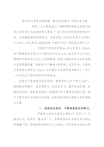 汲取历史经验,自觉地把讲政治贯穿于党性锻炼全过程。一、坚持信念坚定,不断提高政治判断力。罗荣桓元帅多次被毛主席誉为“老实人”。宁都会议后,毛泽东“靠边站”了。罗荣桓因多次支持毛泽东的主张被撤了职,但他始终坚持共产主义信念,